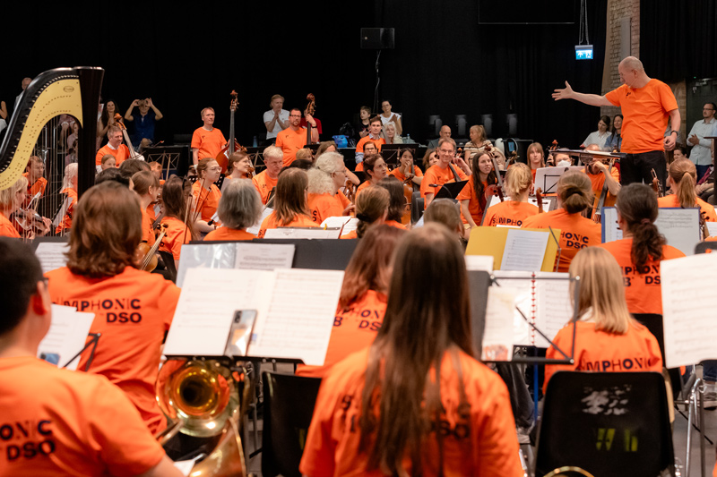 Der ›Symphonic Mob‹ bietet allen, die ein Instrument spielen oder gern singen, die Chance, mit den Musiker:innen eines professionellen Klangkörpers zu musizieren – ganz gleich ob sie im Alltag in Laienorchestern oder Big Bands spielen, ob sie Blasmusik machen oder in einem lokalen Chor mitsingen.